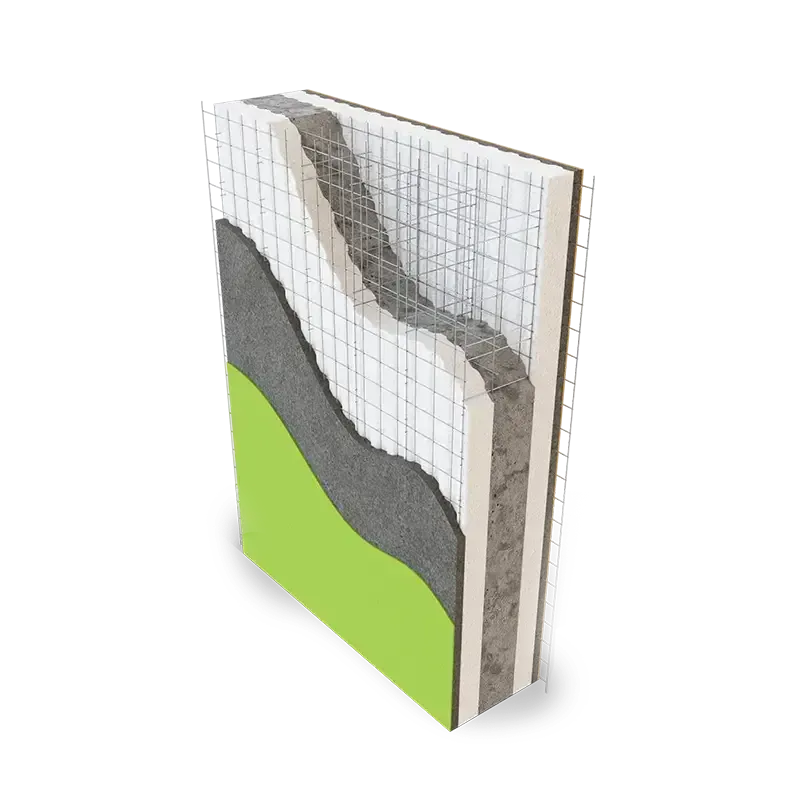 construction-grade polystyrene, with double-galvanized steel wire mesh on both sides. These mesh layers are